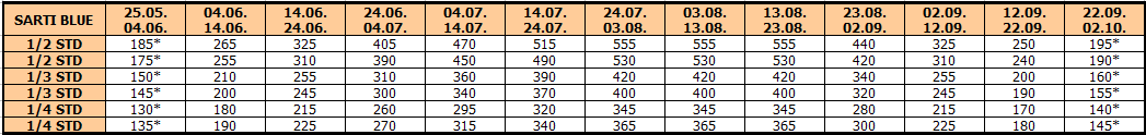 – termini označeni * nemaju umanjenje za sopstveni prevoz