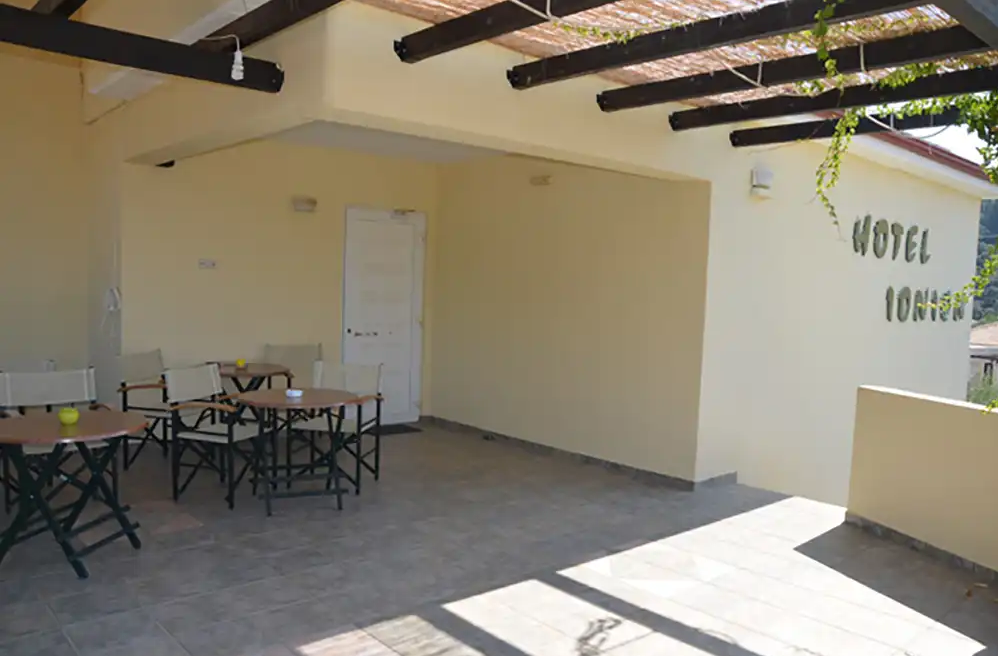 U dvorišnom delu vile Ionion se nalazi zidani roštilj koji gosti mogu nesmetano koristiti. Hotel u svom sastavu poseduje recepciju, bar, terasu za sedenje sa prelepim pogledom na grad i luku, wi-fi. Ispred hotela postoji parking, gde naši gosti, koji dolaze svojim prevoznim sredstvom mogu parkirati.