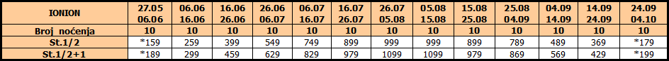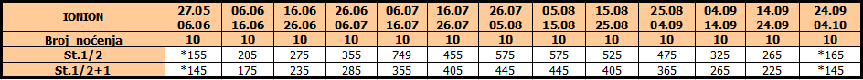 Cene su izražene u evrima po studiju / apartmanu, najam za 10 noćenja