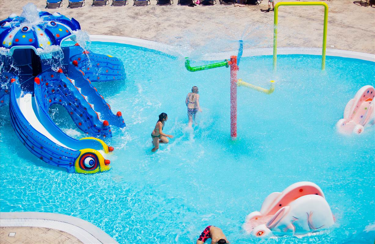 Hotelska sadržaj: bazeni, teniski teren, animacije, amfiteatar na otvorenom, tobogani, recepcija, restorani, barovi, mini market.