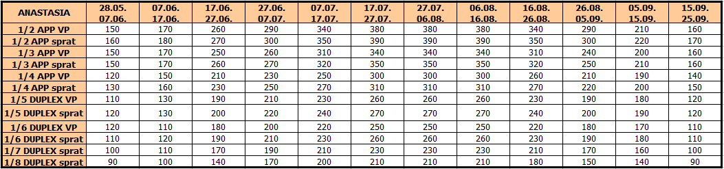 Cene su izražene u evrima po osobi za 10 noćenja sa uračunatim autobuskim prevozom