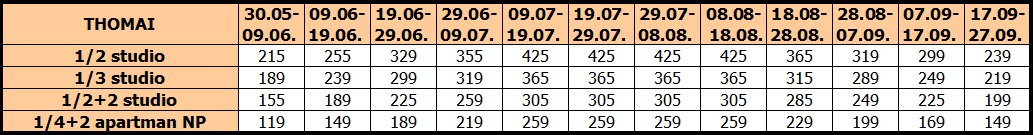 Cene su izražene na bazi najma po studiju/apartmanu za 10 noćenja