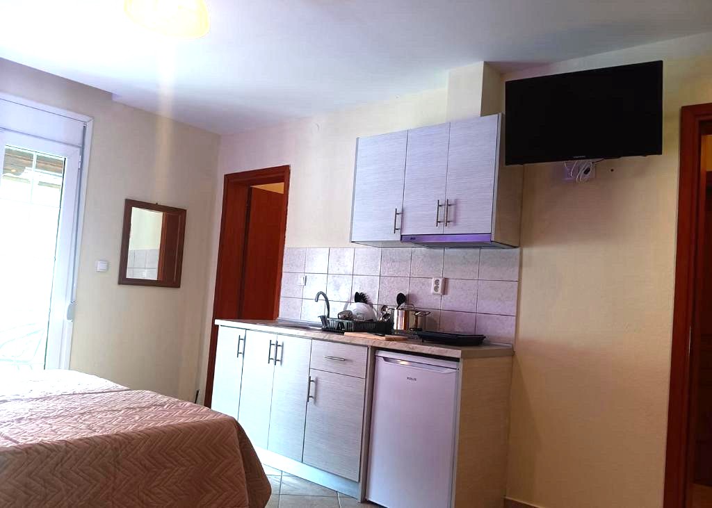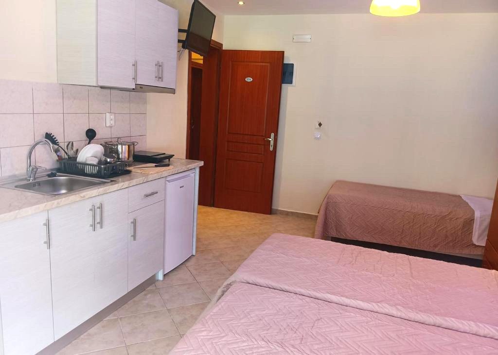 1/3 studio – u jednoj prostoriji čajna kuhinja, dva spojena obična ležaja i jedan odvojen obični ležaj