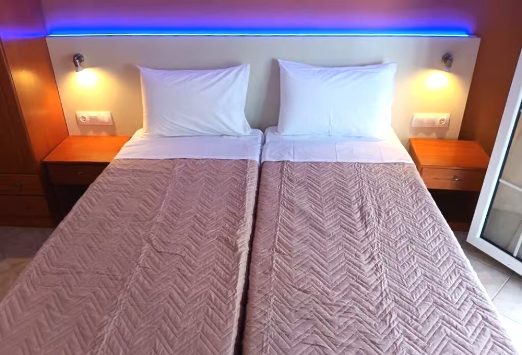 – Dimenzije ležajeva u Grčkoj se razlikuju od naših standarda. Grčki standard za normalan ležaj je 75-90 cm sa 180-200 cm, francuski ležaj 110-150 cm sa 180-200 cm. Pomoćni ležaj u svim objektima u Grčkoj je na sklapanje, drvene ili metalne konstrukcije ili fotelje na rasklapanje, manjih dimenzija.