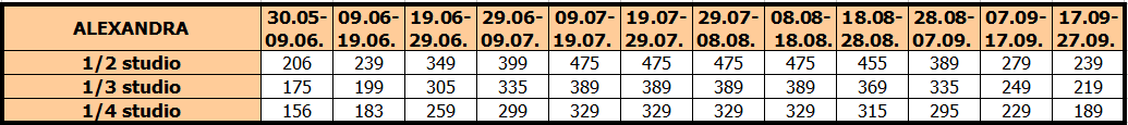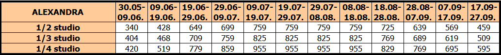 Cene su izražene na bazi najma po studiju/apartmanu za 10 noćenja