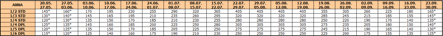 – termini označeni * nemaju umanjenje za sopstveni prevoz