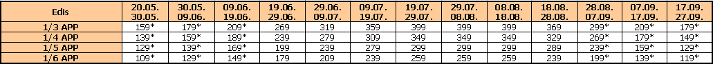 Za sopstveni prevoz cena aranžmana se umanjuje za 30€ po osobi, a 20€ za smene označene ZVEZDICOM (*)