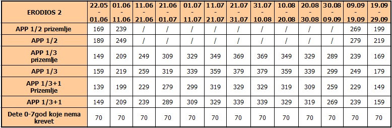 Cene su u Eur, po osobi, najam za 10 noćenja + autobuski prevoz
