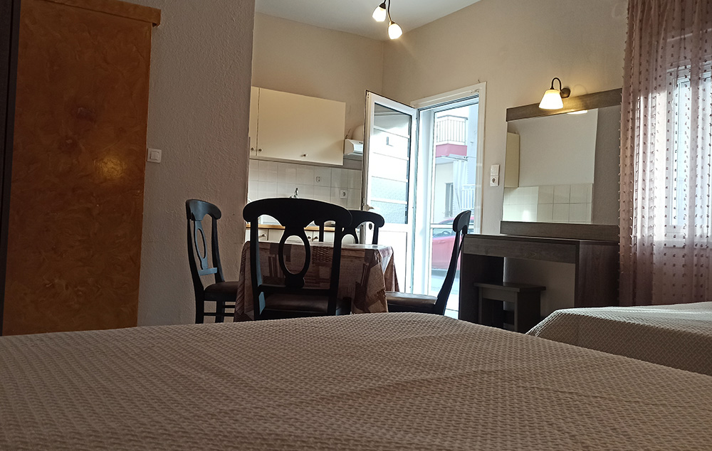 Opis: Vila poseduje dvokrevetne, trokrevetne, četvorokrevetne studije rasporedjena u prizemlju, na prvom, drugom i trećem spratu. Sve smeštajne jedinice imaju opremljen kuhinjski deo, kupatilo/wc, terasu, TV WiFi internet i klima uredjaj (uz doplatu na licu mesta od 6€ po danu). Nedaleko od vile je centralno šetalište i brojni sadržaji.