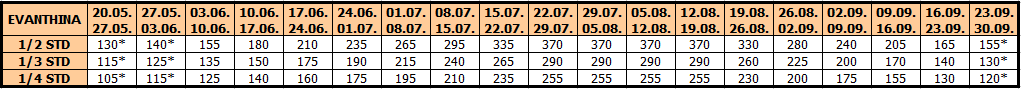 – termini označeni * nemaju umanjenje za sopstveni prevoz