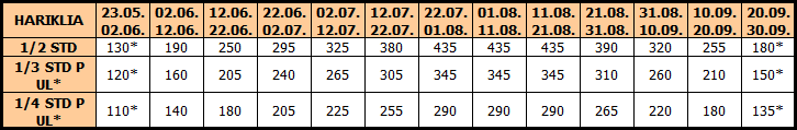– termini označeni * nemaju umanjenje za sopstveni prevoz