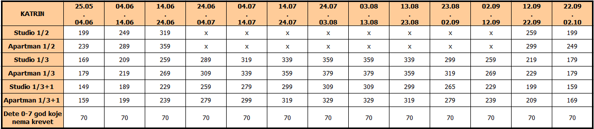 *Klima uređaj – doplata 6 eura dnevno na licu mesta (opciono)