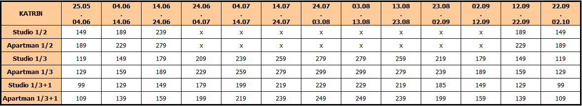 Cene su u Eur, po osobi, najam za 10 noćenja