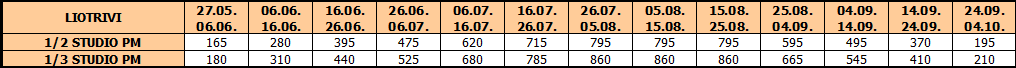 Cene u tabeli su izražene na bazi najma po studiju/apartmanu za 10 noćenja.