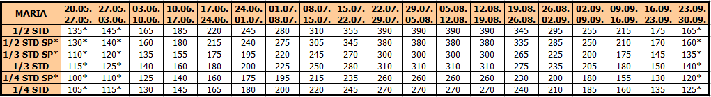 – termini označeni * nemaju umanjenje za sopstveni prevoz
