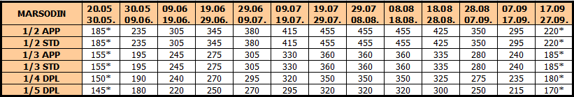 – termini označeni * nemaju umanjenje za sopstveni prevoz