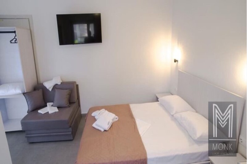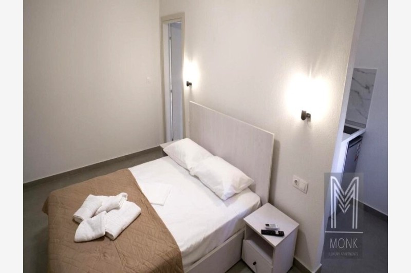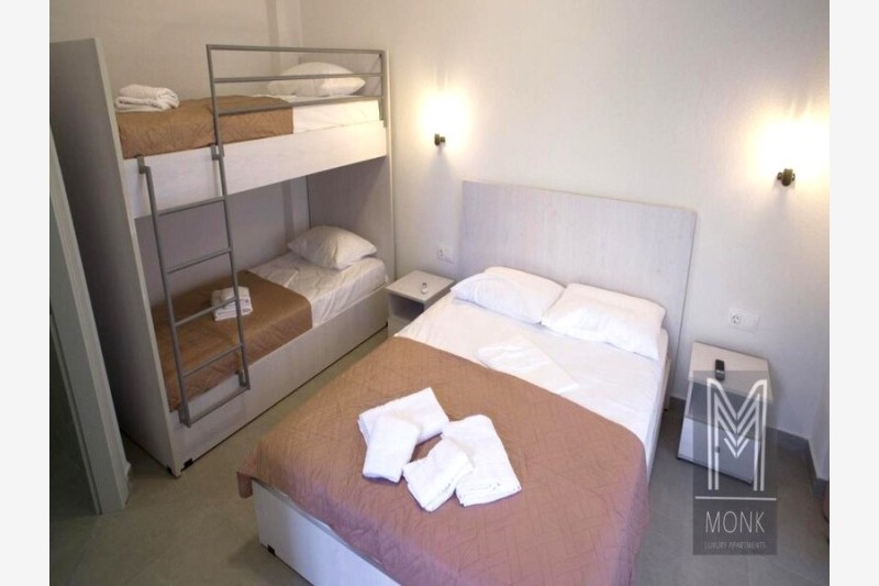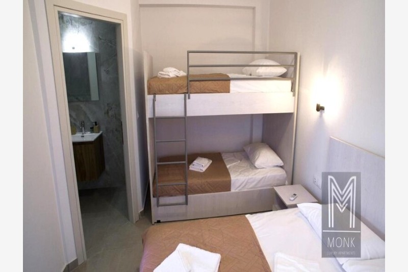 Vila Monk Luxury je objekat novijeg datuma koji se nalazi u blizini naše vile Janis Rooms na oko 350 metara udaljenosti od plaže. U ponudi ovog objekta su dvokrevetni, 1/2+1 i četvorokrevetni studiji smešteni u prizemlju dok se 1/2+2 studiji nalaze na prvom i ujedno poslednjem spratu. 1/2+1 i 1/2+2 studiji u svom sastavu imaju francuski ležaj i sofu na razvlačenje, dok četvorokrevetni studiji pored francuskog ležaja imaju i krevete na sprat. Četvorokrevetne mezonete se nalaze u prizemlju objekta, na prvom nivou je smeštena kuhinja sa francuskim ležajem, na drugom nivou se nalaze dva standardna ležaja. Svaka smeštajna jedinica poseduje osnovno opremljenu kuhinju, kupatilo, komfornu terasu, TV i klima uređaj čije se korišćenje dodatno naplaćuje. Promena posteljine je jedanput u toku boravka a u objektu postoji i mogućnost korišćenja WiFi interneta.