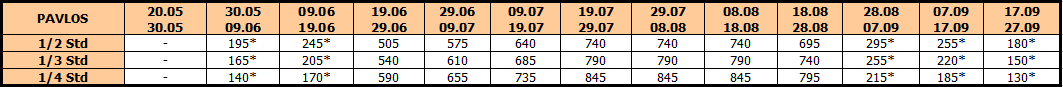 U smenama sa zvezdicom *, u slučaju sopstvenog prevoza cena paket aranžmana se umanjuje za 25€ po osobi.