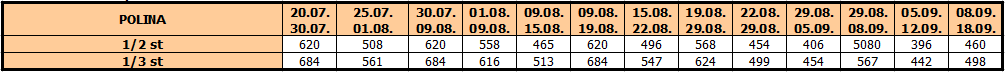 Cene su izražene na bazi paket aranžmana (smeštaj+prevoz) za 6/7/8/10/13/14/16 noćenja