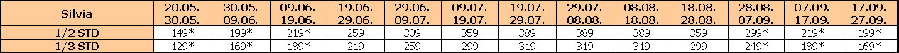 U slučaju spajanja smena na organizovanom prevozu, cena aranžmana za drugu smenu se umanjuje za 25€ po osobi osim za smene koje su u tabeli označene zvezdicom (*).