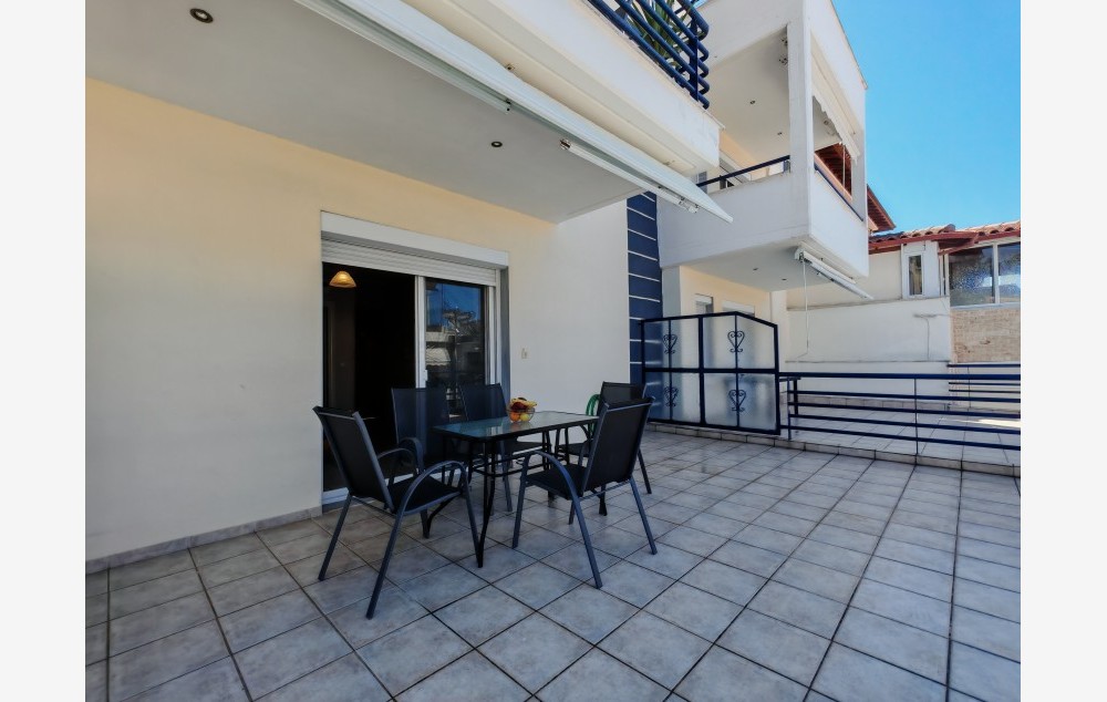 Nalazi se na centralnoj lokaciji kod trga sa fontanom. Od mora je udaljena 60m, a od gradske plaže oko 10ak min lagane šetnje. U ponudi su komforni apartmani za tri do pet osoba na prvom i drugom spratu. Apartmani imaju po dva balkona, opremljeni su odličnom kuhinjom (šporet i veliki frižider). Kuća ima signal za besplatno korišćenje bežičnog interneta, dok smeštajne jedinice imaju TV i klima uređaj čije je korišćenje uključeno u cenu.