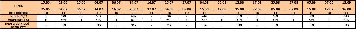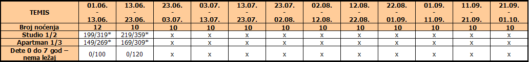 *dete od 2 do 7 godina – plaća iznos iz tabele i nema svoj krevet u smeštaju.