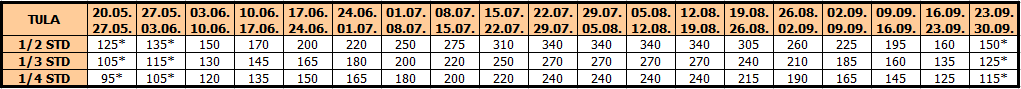 – termini označeni * nemaju umanjenje za sopstveni prevoz
