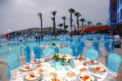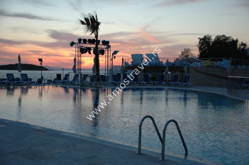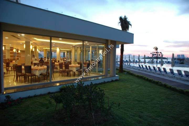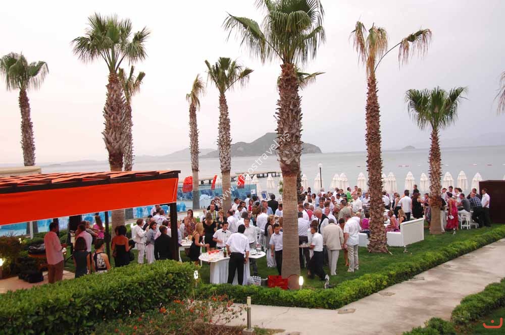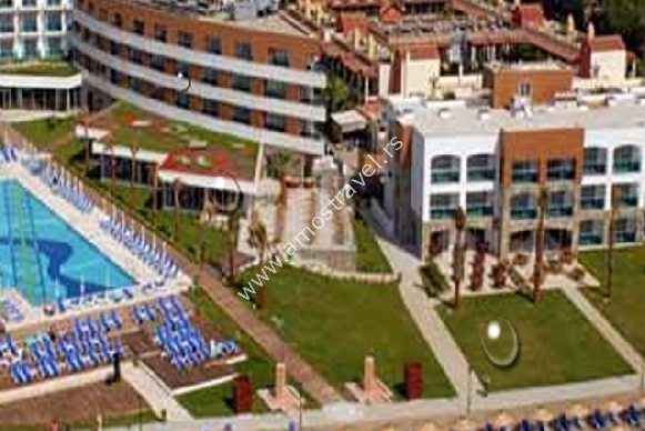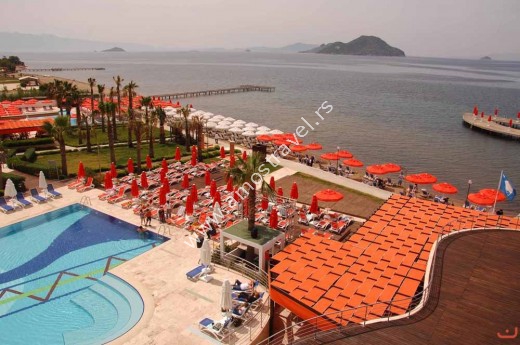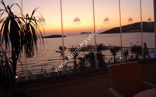 Lokacija: Smešten je na peskovitoj plaži dugoj 300 m u mestu Turgutreis, od koga je udaljen 4 km,a od Bodruma 22 km. Za goste hotela ležaljke i suncobrani su besplatni.