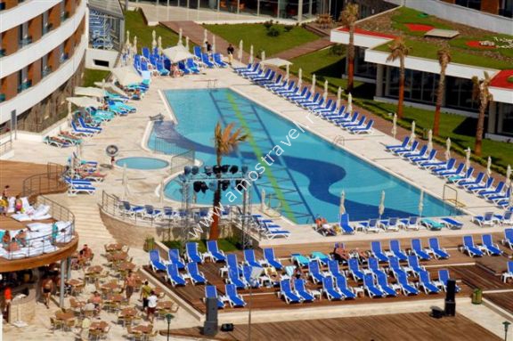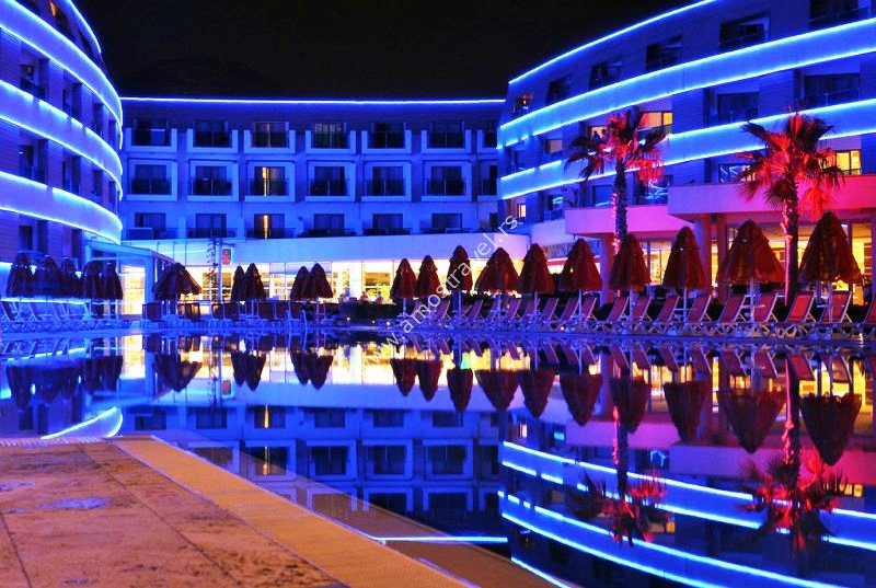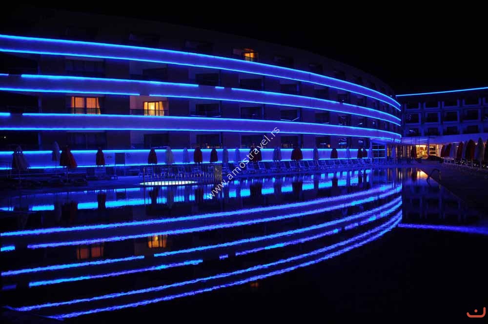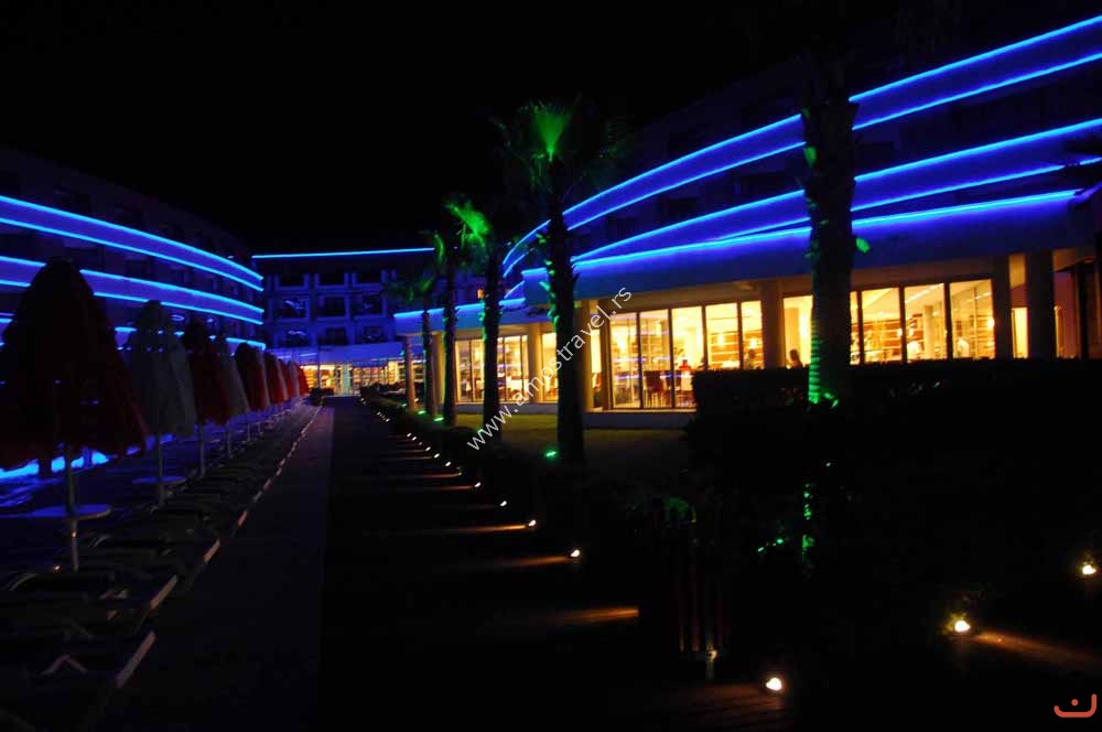 Sadržaj: Recepcija, sefovi na recepciji, četiri restorana, pet barova, bazeni za odrasle, bazen za decu ,club za decu, animacija za odrasle i za decu, djakuzi, hamam, sauna, fitnes centar, masaže, doktor, fotograf, internet café, market, butik, suvenirnica, frizer, TV salon, parking, servis za pranje i sušenje veša , odbojka na pesku, sala za stoni tenis, bilijar ,pikado, mogućnost sportova na vodi…