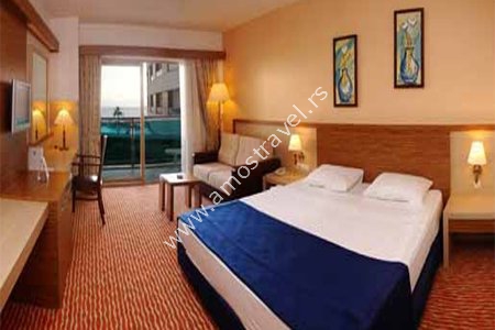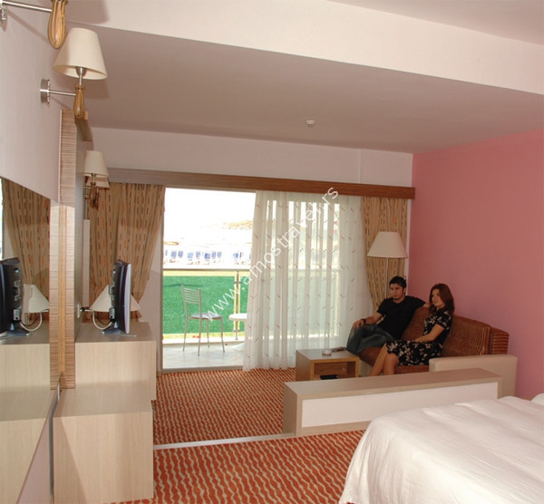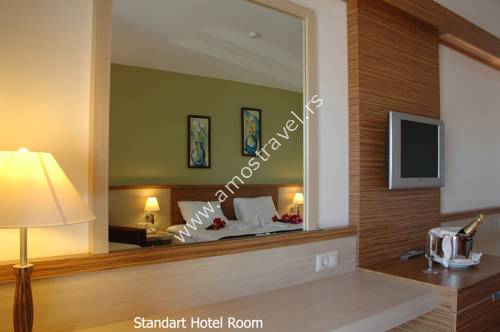 Smeštaj: Sobe u hotelu su standardne dvokrevetne i trokrevetne (maximalno primaju 2 odrasle osobe i 2 dece ili 3 odrasle osobe). Sve sobe su lepo uređene i moderno opremljene. Hotel idealan za ugodan odmor i uživanje na lepoj plaži.