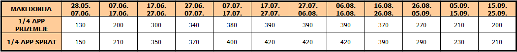 *Polazak autobusa je dan ranije u odnosu na datume iz tabele*