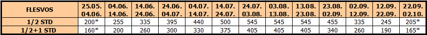 Cene su izražene u evrima po osobi, najam za 10 noćenja