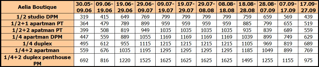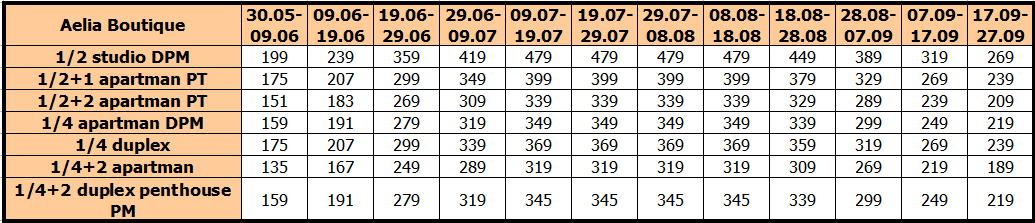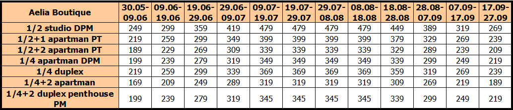 Cene su izražene na bazi najma po studiju/apartmanu za 10 noćenja