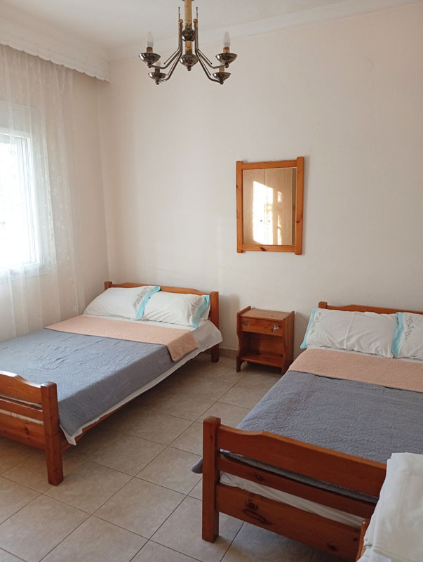 Smeštaj: U pitanju je veoma komforan dupleks apartmanima, u prizemlju objekta, sa sopstvenom terasom, za smeštaj do 8 osoba. Apartman poseduje dve spavaće sobe sa po dva ležaja dimenzija 120 x 200 cm, zatim dnevni boravak sa trosedom i dvosedom, posebnu trpezariju sa kuhinjom opremljenom posuđem i kombinovanim frižiderom, terasu sa garniturom za sedenje, SAT TV, besplatni WiFi internet, klima uređaj, a korišćenje klima uređaja moguće je uz doplatu na licu mesta 5 € dnevno po uređaju. Promena posteljine jednom tokom boravka. Vila nema peškire i gosti sami održavaju higijenu studija.