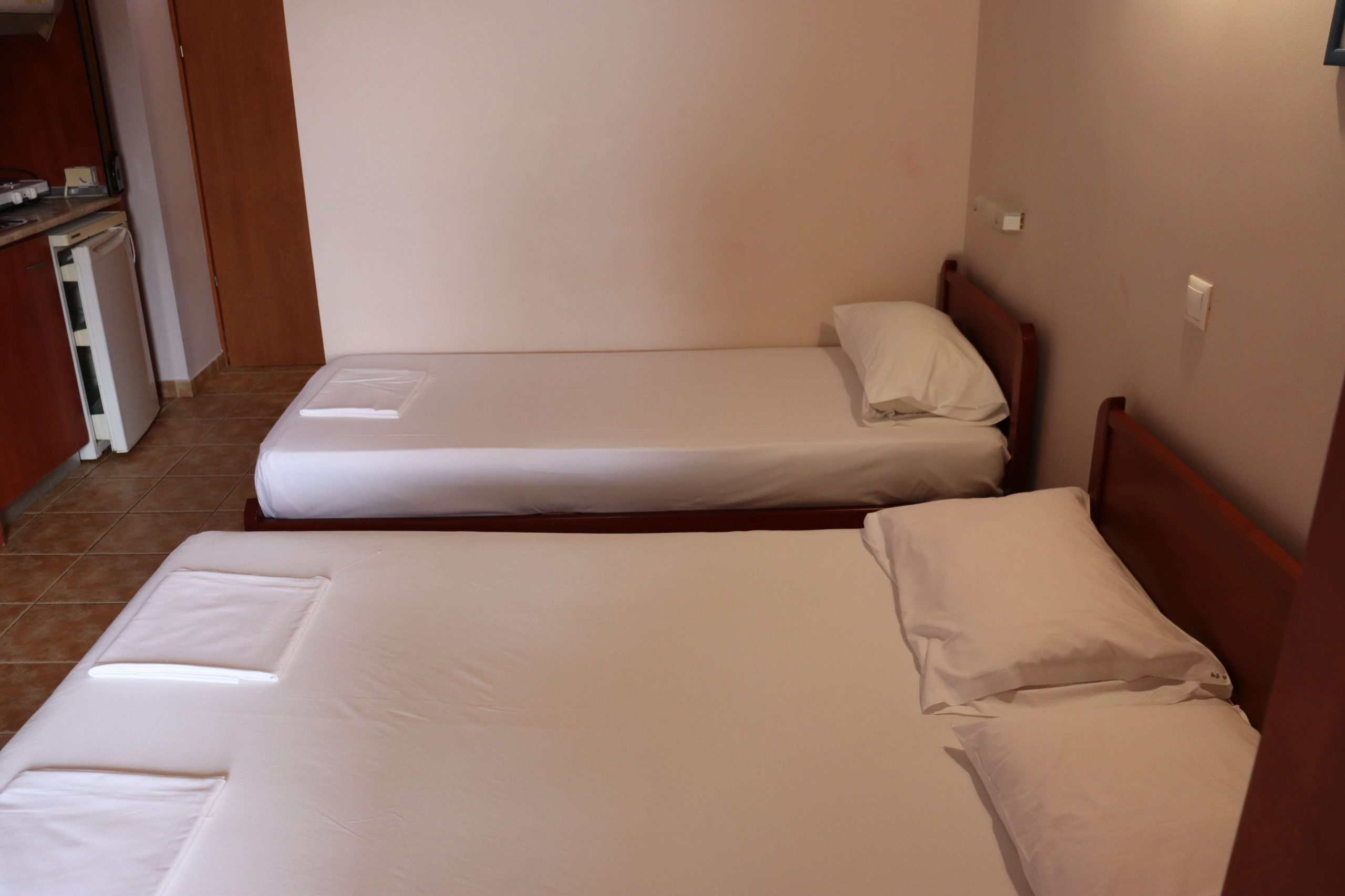 U pojedinim slučajevima moguća su odstupanja mera ležaja od našeg standarda. Grčki standard za normalan ležaj je 75-90 cm sa 180-200 cm, francuski ležaj 115-150 cm sa 180-200 cm. Pomoćni ležaj u svim objektima u Grčkoj je na sklapanje, drvene ili metalne konstrukcije ili fotelje na rasklapanje, manjih dimenzija.