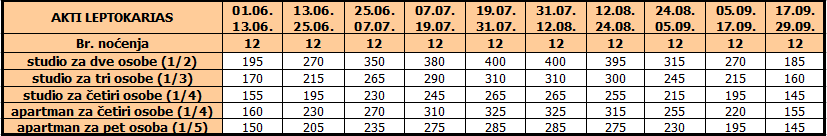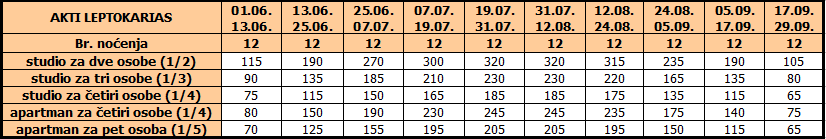 • Ukoliko dete do 12 godina koristi vlastiti ležaj, plaća cenu iz tabele umanjenu za 20€