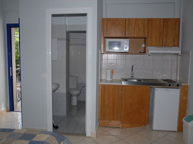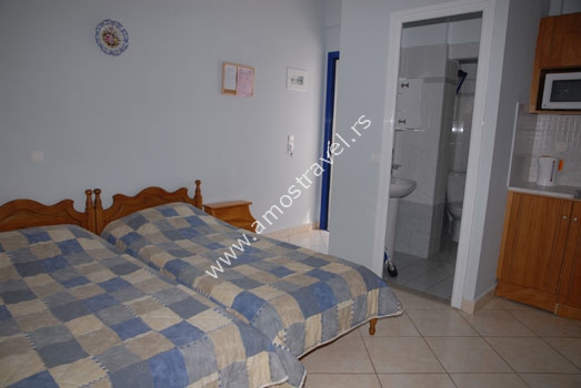 Studio 02: sadrži dva ležaja i po potrebi pomoćni ležaj, kuhinjski deo (frižider, sudopera, aspirator, štednjak sa dve ringle i posuđe za odgovarajući broj osoba), klima (uz doplatu 5euar/dnevno), TV, sef (uz doplatu 1 eur/dnevno), wi-fi internet, kupatilo, mogućnost trećeg pomoćnog ležaja, balkon sa garniturom za sedenje. Sobe se čiste svaki drugi dan, a posteljina i peškiri se menjaju 3 puta za 10 dana.