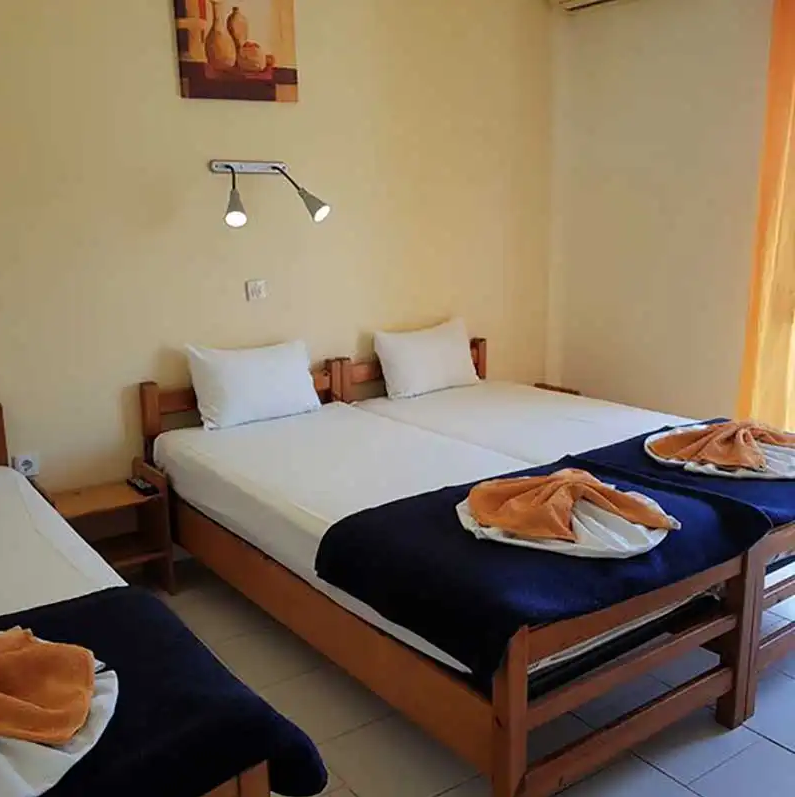 SMESTAJ: Apartmani i studio sadrže opremljenu kuhinju, deo za spavanje sa dva, odnosno tri ležaja ili manji francuski i standardni, kupatilo i nešto užu, ali dugačku terasu sa garniturom za sedenje. Nekoliko apartmana ima izdvojen treći ležaj u kuhinjskom delu. Vila ima malu recepciju i svi studiji su opremljeni klima uredjajem (uz doplatu na licu mesta (opcija), 5 eur dnevno po studiju/apartmanu), SAT TV-om i wi – fi Inetrnetom. Veličina studija i apartmana je cca 18 – 20 kvm + terasa. Vila Tasos – Despina je B kategorije, nema peškire i mogućnost sopstvenog parkinga. Parkiranje je moguće na glavnoj ulici.