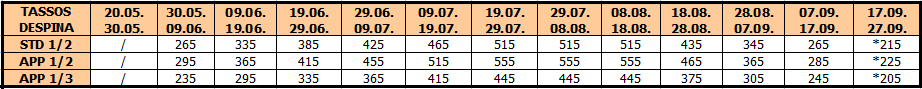 Cene su izražene u evrima po studiju / apartmanu, najam za 10 noćenja