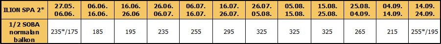 Cene sa zvezdicom (*) u prvoj i poslednjoj smeni označavaju paket aranžman (smeštaj+prevoz po osobi) i nemaju umanjenje za polaske južnije od Beograda.