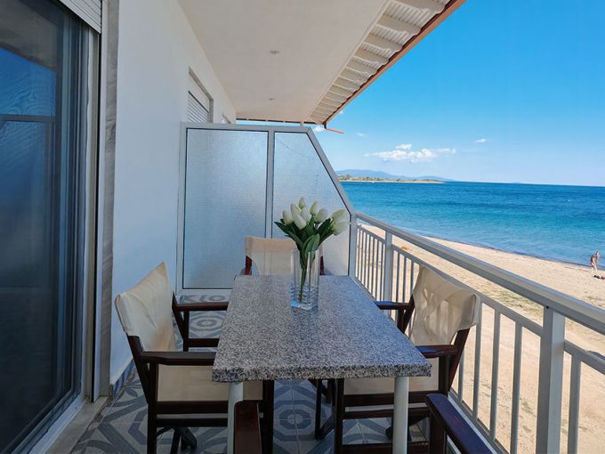 Kuća Alexandra nalazi se na samoj plaži mesta Psakoudia i odlikuje se terasama koje imaju direktan pogled na more. Četvorokrevetni studiji i apartmani nalaze se na prvom i drugom spratu. Kuća ima signal za bežični internet, a smeštajne jedinice imaju TV i klima uređaj čije je korišćenje uključeno u cenu u julu i avgustu.