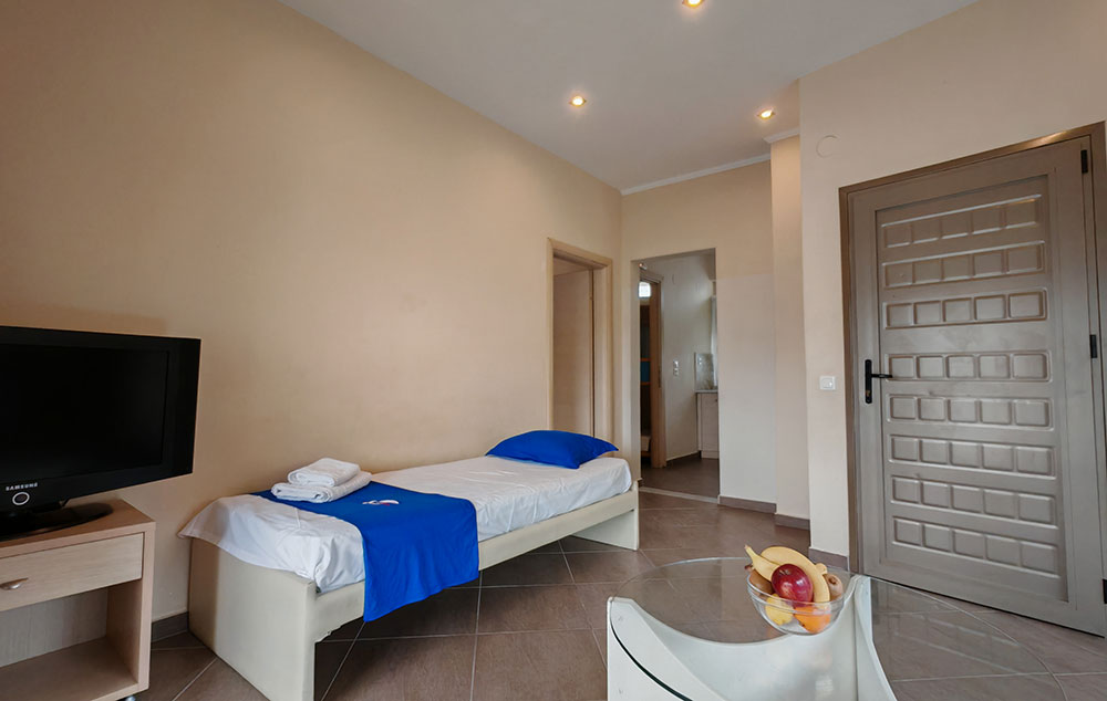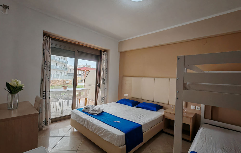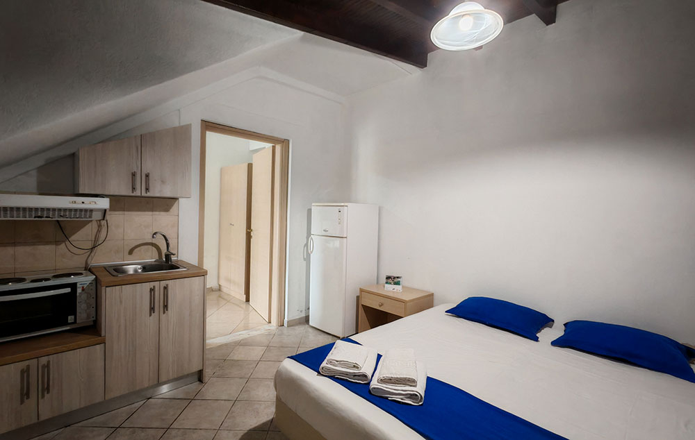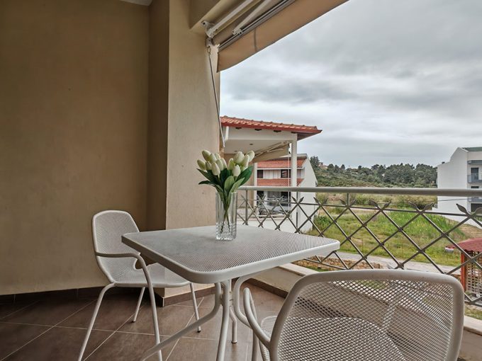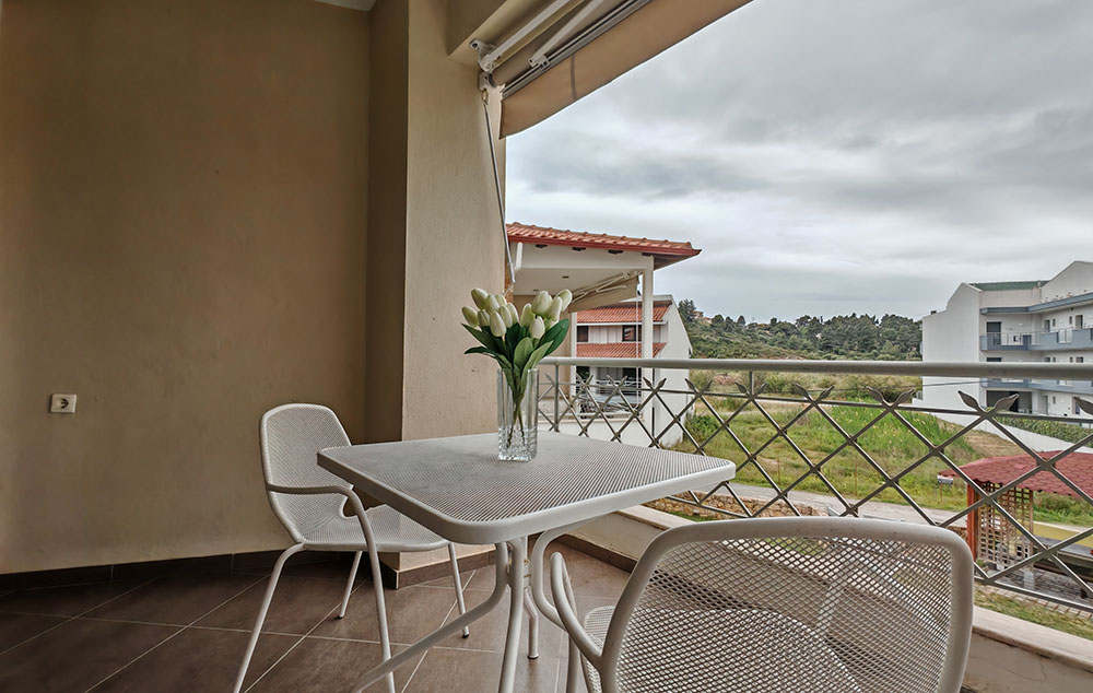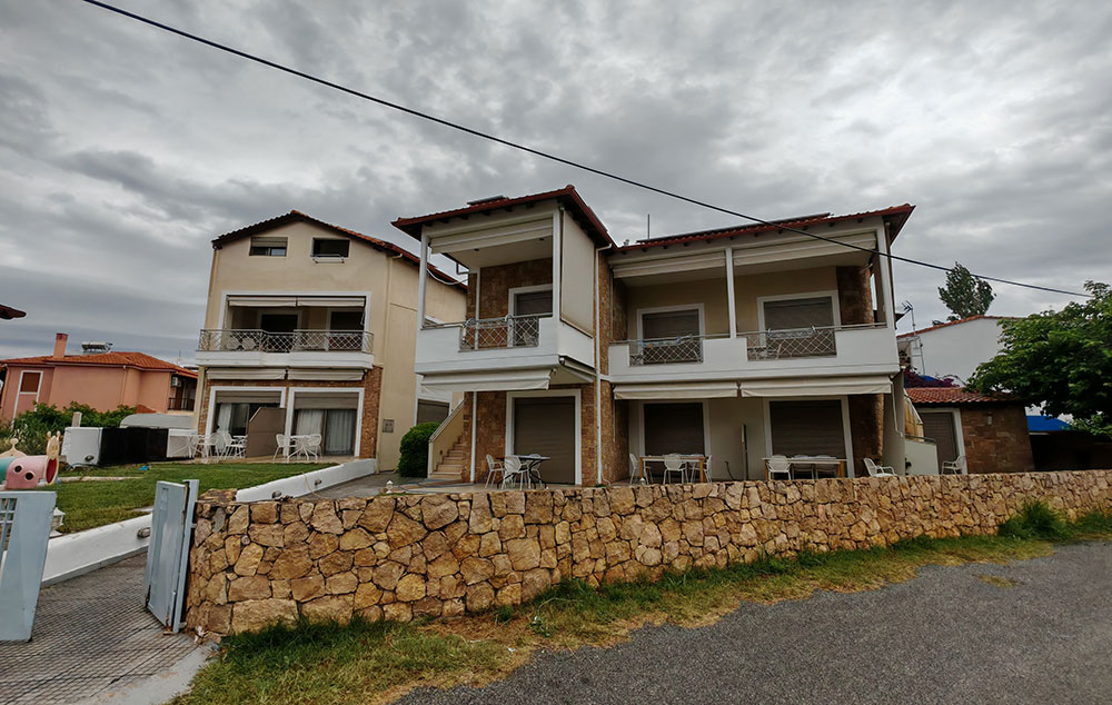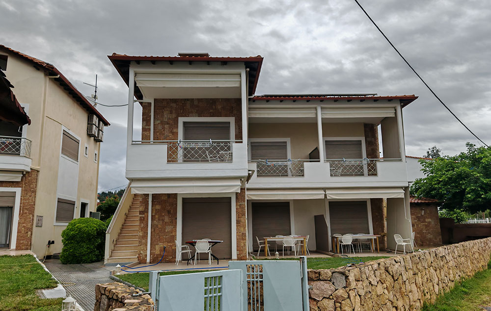 Nalazi se na oko 160m od Paradiso plaže, a na nešto više od 800m od centra Neos Marmarasa. Studiji, apartmani i duplex nalaze se u prizemlju i na prvom spratu. Kuća ima SAT TV, bežični internet kao i klima uređaje čije je korišćenje uključeno u cenu. Terase su prostrane. Kuća ima dvorište sa manjim prostorom uređenim za dečiju razonodu. Prilikom zamene posteljine na pola smene organizovano je i čišćenje smeštaja.