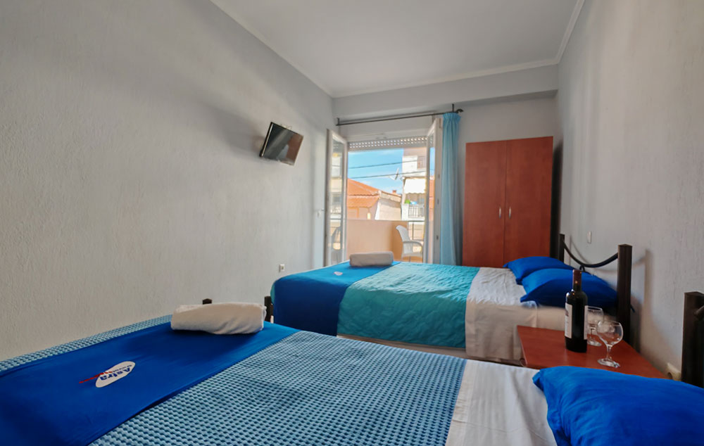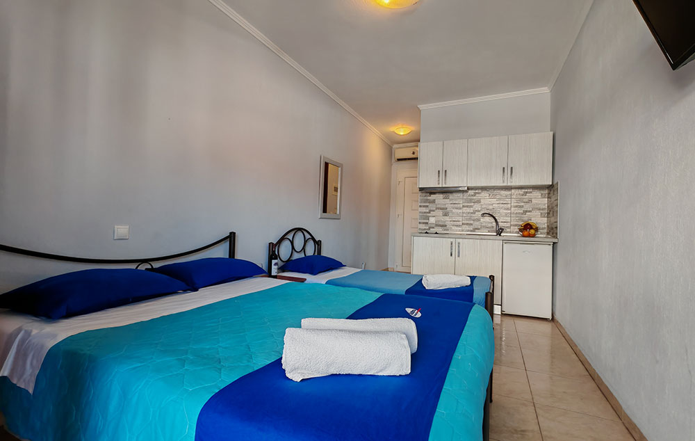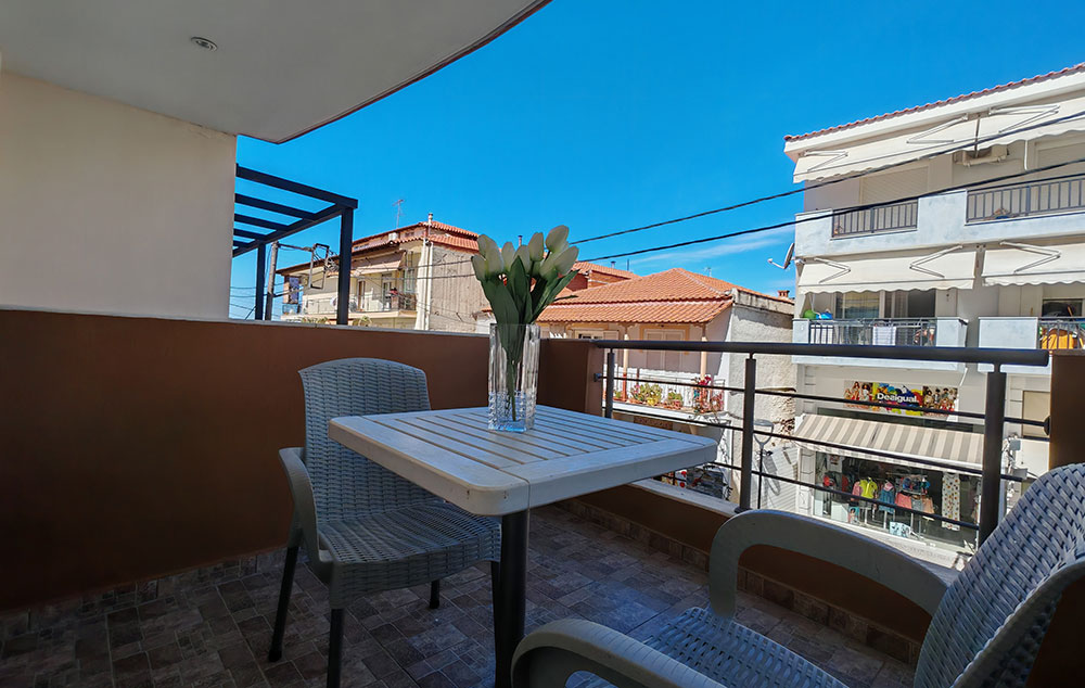 Nalazi se u mirnoj ulici na oko 20m od najlepšeg trga odakle polaze izletnički brodići i na oko deset minuta do glavne gradske plaže. U ponudi su trokrevetni studiji na prvom spratu. Kuća ima signal za besplatno korišćenje bežičnog interneta, a studiji imaju TV i klima uređaj čije je korišćenje uključeno u cenu. Ovo je jedan od najpovoljnijih smeštaja u Neos Marmarasu.