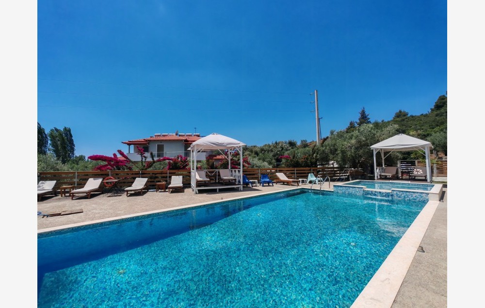 Nalazi se u blizini Neos Marmarasa, u zalivu Simonitiko, na oko 320m od prelepe plaže. U ponudi su studiji i duplexi smešteni u prizemlju, na prvom i drugom spratu. U svojoj ponudi ima dečiju zonu, roštilj i parking. Bazen u okviru kuće Zeppos je na raspolaganju i gostima kuće Zeppos Garden, dok je dečija zona smeštena pod maslinjakom u izuzetno prostranom travnatom dvorištu. Kuća ima SAT TV, klima uređaje uz doplatu, WIFI i parking, kao i čišćenje na pola smene prilikom zamene posteljine.