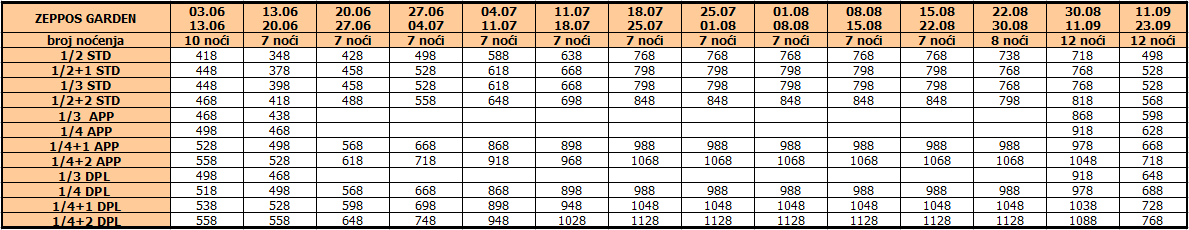 Cene iz tabele predstavljaju cenu paket aranžmana (smeštaj + prevoz) po osobi.