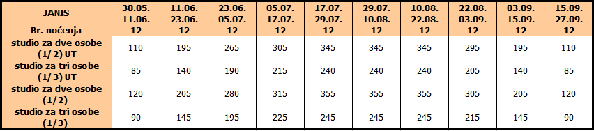 Najam studija po osobi za 12 noćenja – prevoz nije uključen u cenu