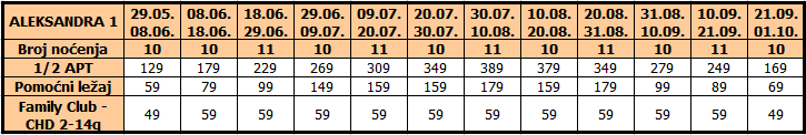 I dete 2 – 14 god plaća cenu iz tabele, u pratnji 2 punoplatežne osobe po ceni APP 02 i koriste PL ili zajednički ležaj sa punoplatežnom osobom u APP02.