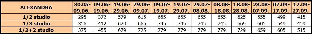Cene su izražene u evrima po najmu studija/apartmana za 10 noćenja