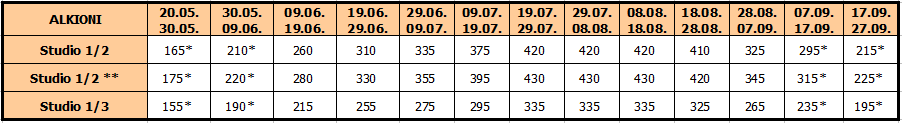 Cene su izražene u evrima po app/studiju, najam za 10 noćenja