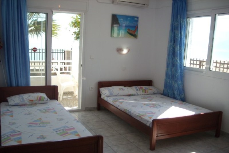Vila Alkis nalazi se na samoj plaži – u prvom redu kuća do mora, u kraju Nea Vrasne ka Vrasna Paraliji. Od centra Nea Vrasne udaljena je oko 350 metara, od Asprovalte oko 900 metara, a od najbližeg restorana svega 70-ak metara. Vila ima lepo uređeni vrt sa roštiljem i garniturom za sedenje koji je na raspolaganju gostima. Vila raspolaže dvokrevetnim, trokrevetnim i četvorokrevetnim studijima kao i četvorokrevetnim apartmanima. Svaki studio/apartman ima osnovno opremljenu kuhinju sa frižiderom, rešoom, posuđem i escajgom srazmerno broju kreveta, kupatilo, SAT – TV i terasu. Većina apartmana ima bočni ili direktan pogled na more, dok se korišćenje klima uređaja dodatno naplaćuje. Četvorokrevetni apartman ima odvojenu spavaću sobu u kojoj se nalazi jedan grčki francuski ležaj (dimenzija oko 130 cm) i dva klasična ležaja od kojih je jedan u spavaćoj sobi, a drugi u izdvojenom kuhinjskom delu. Promena posteljine je jedanput u toku boravka. U vili postoji mogućnost korišćenja WiFi interneta.